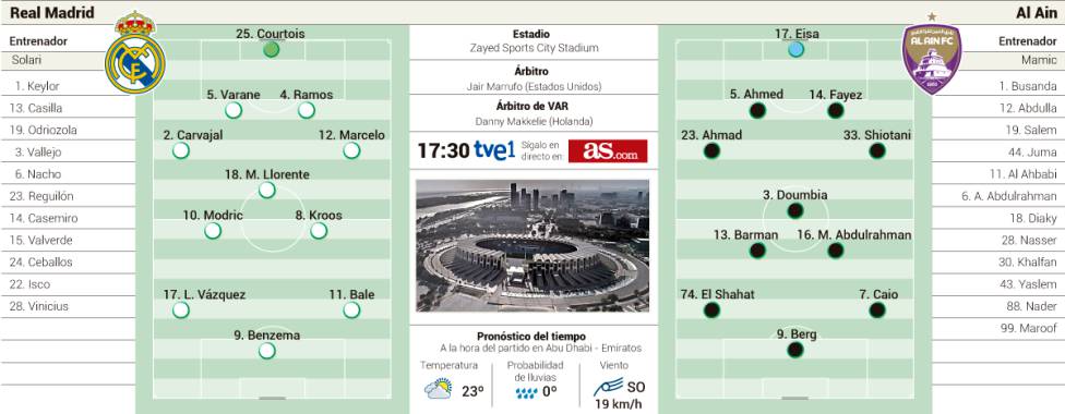 Zvláště s přihlédnutím k formě Solariho party, která i nadále vykazuje nedostatky. Trenér Realu Madrid zdá se nezmění sestavu, která zdolala v semifinále Kashimu. Jediným otazníkem tak je, kdo z dvojice Casemiro a Llorente dostane důvěru od úvodního hvizdu.